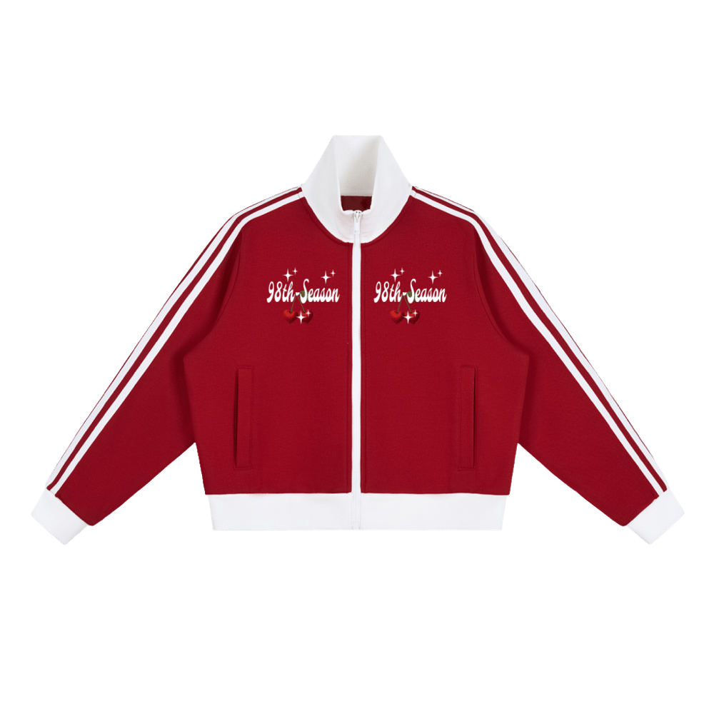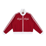 CONTRAST SIDE STRIPE FLEECE CROP TRACK JACKET